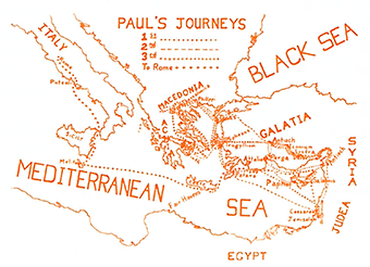 Paul's third missionary journey took him through the Asia Minor provinces of Galatia and Phrygia. He arrived at Ephesus and here stayed three years while he taught in the school of Tyranus. As in other places he met much opposition. He finally left to visit the churches he had established in Macedonia and Achaia. Having done so, he came back through Troas, met briefly with the Ephesian elders, and sailed for Judea to be present for the Jewish Feast of Pentecost.Paul's Imprisonment